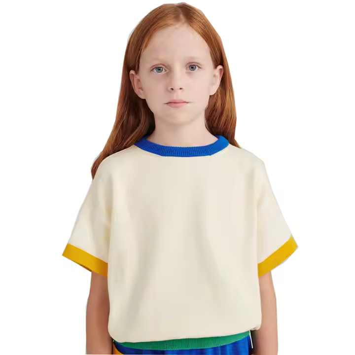 Hot Tags : vibrant color block design kids knitwear soft short sleeve top