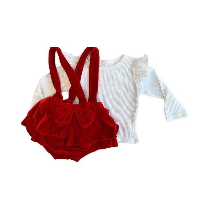 Toddler girl Christmas clothes Red velvet suspender Diaper Cover Gaoteng Manufacturing OEM