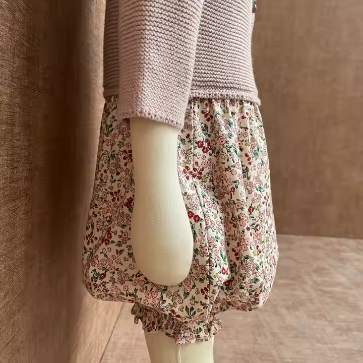 Customized kids girls clothing set warm thick knitted sweater floral shorts 2 pieces children set