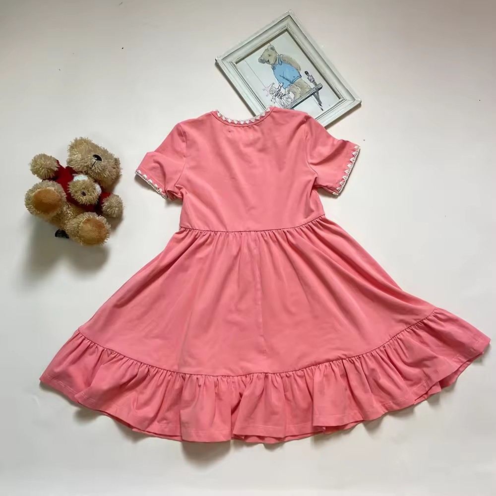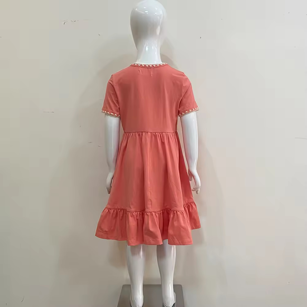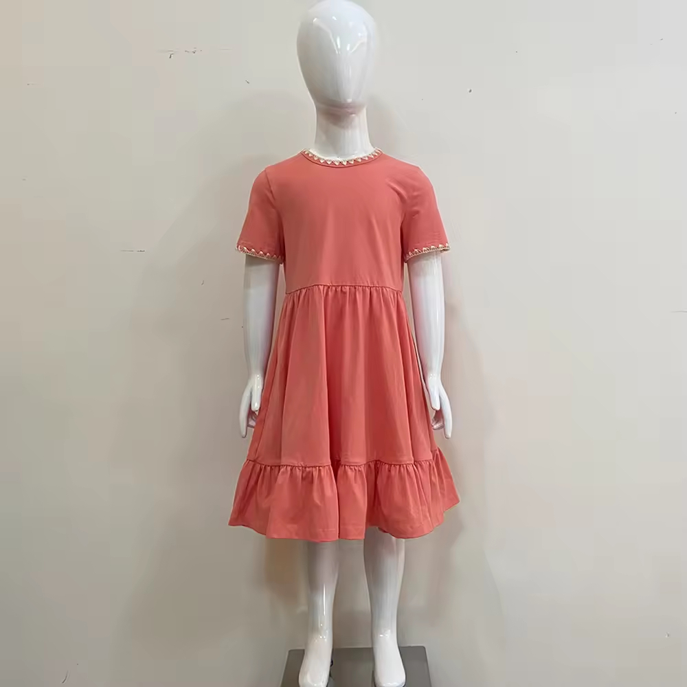Beautiful Organic Cotton Baby Clothes Solid Color Knit Girls Kids Children Party Simple Casual Sweet Knee Length Twirl Dress