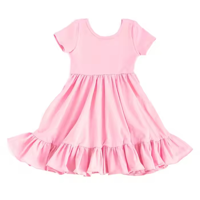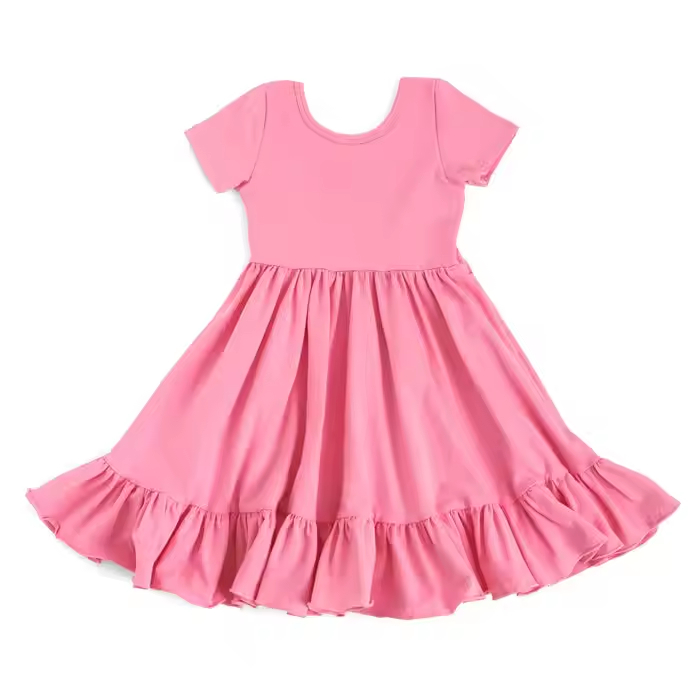 Custom Bamboo or Cotton Spandex Twirl Dress Kids Girls Dresses 2-12 Children Clothing Basic Style Baby Girl Dress Supplier