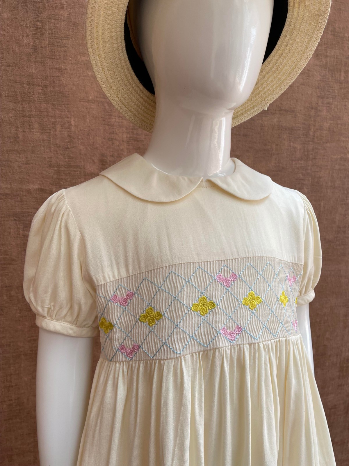 2025 Fashion Design Summer Casual Dress Rayon Cotton Shape Collar Embroider & Smocking at Chest Kids Girl Dresses