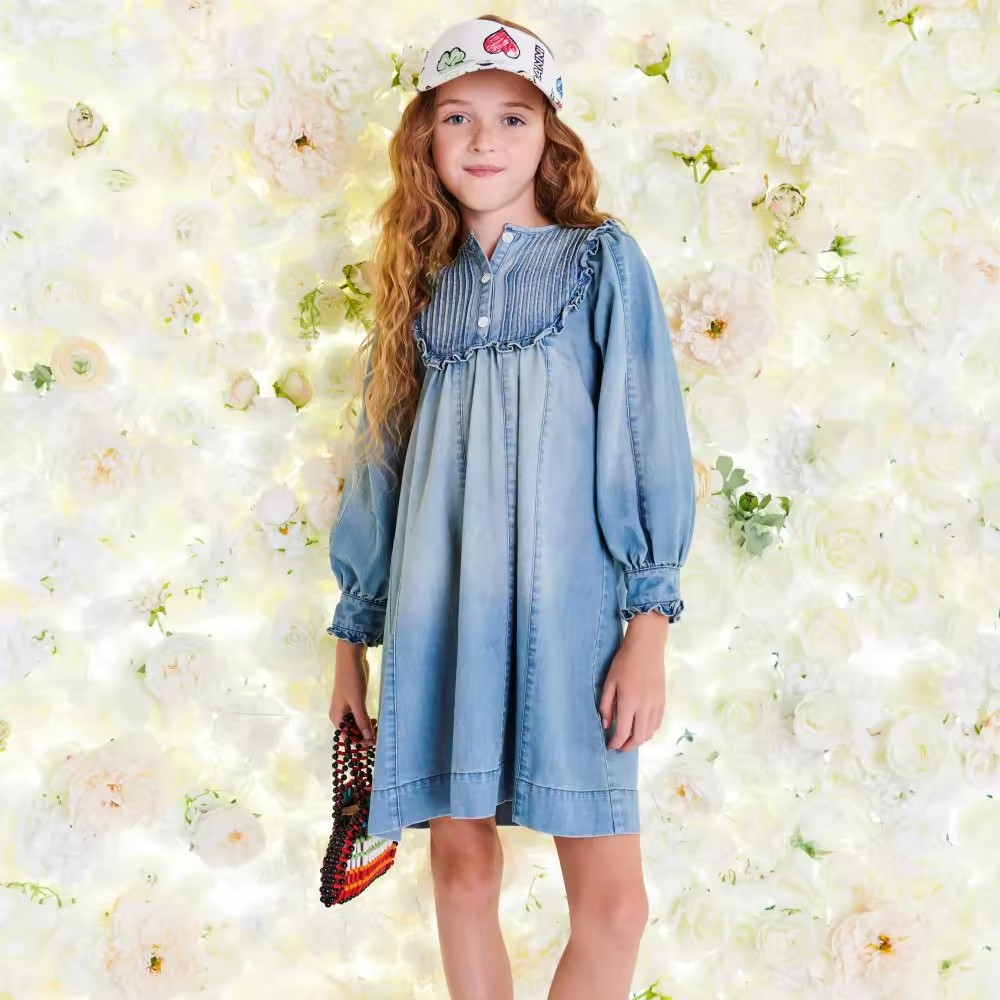 Customized Different Style Acid Wash Summer or Autumn Denim Kids Dresses for Girls Brand Knee Length Kids Denim Dress Supplier