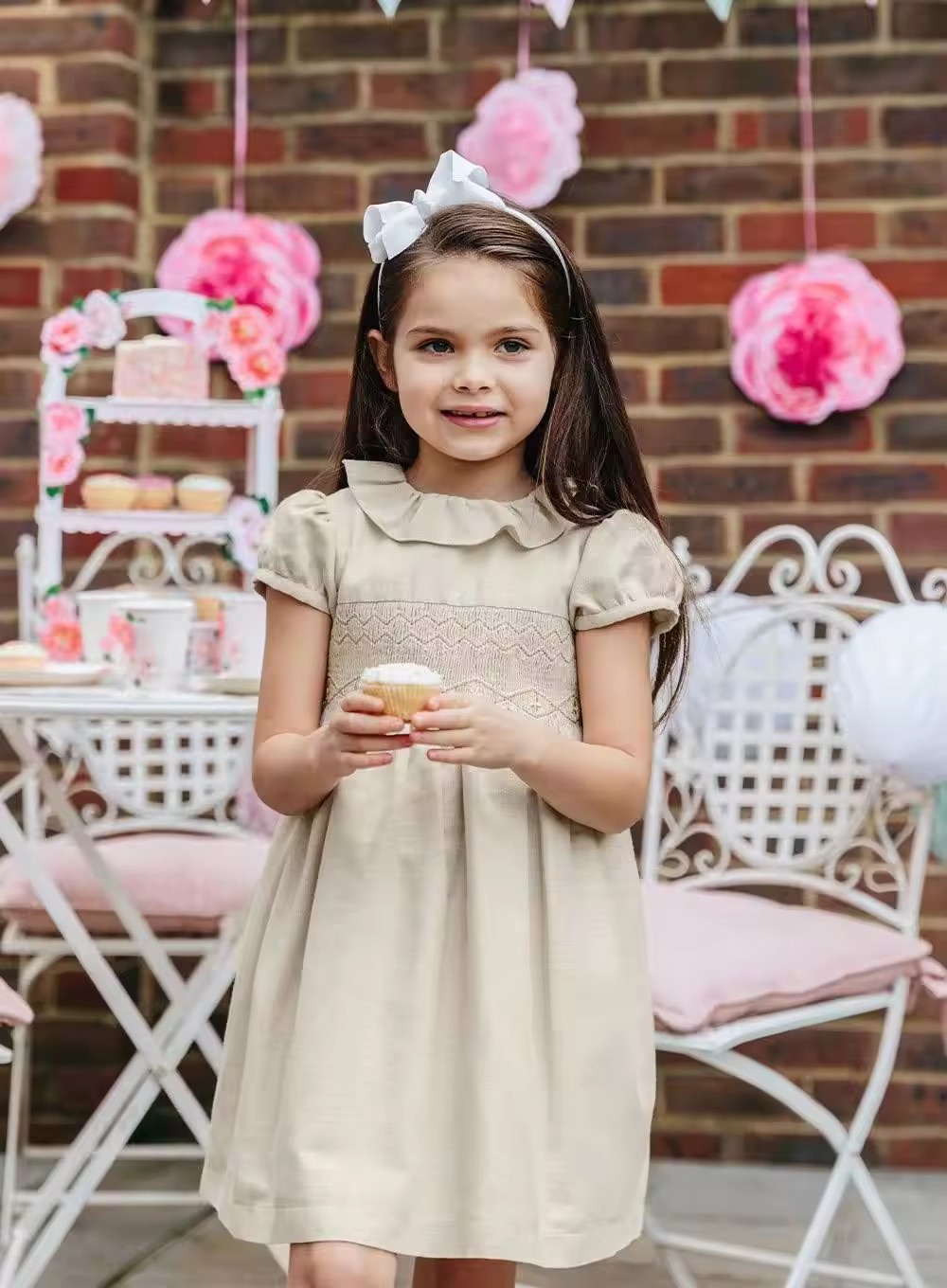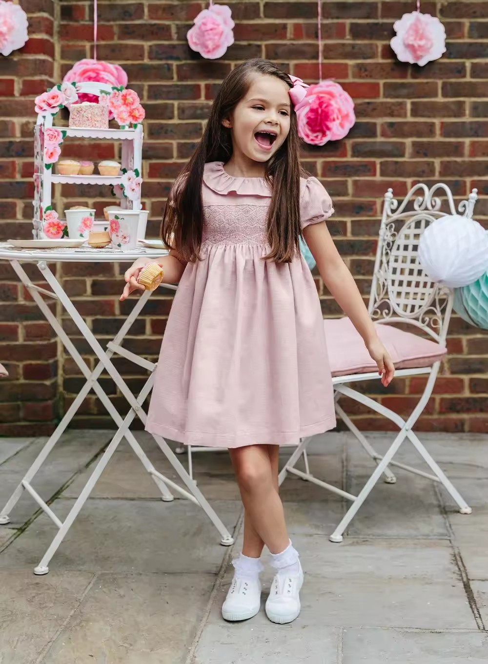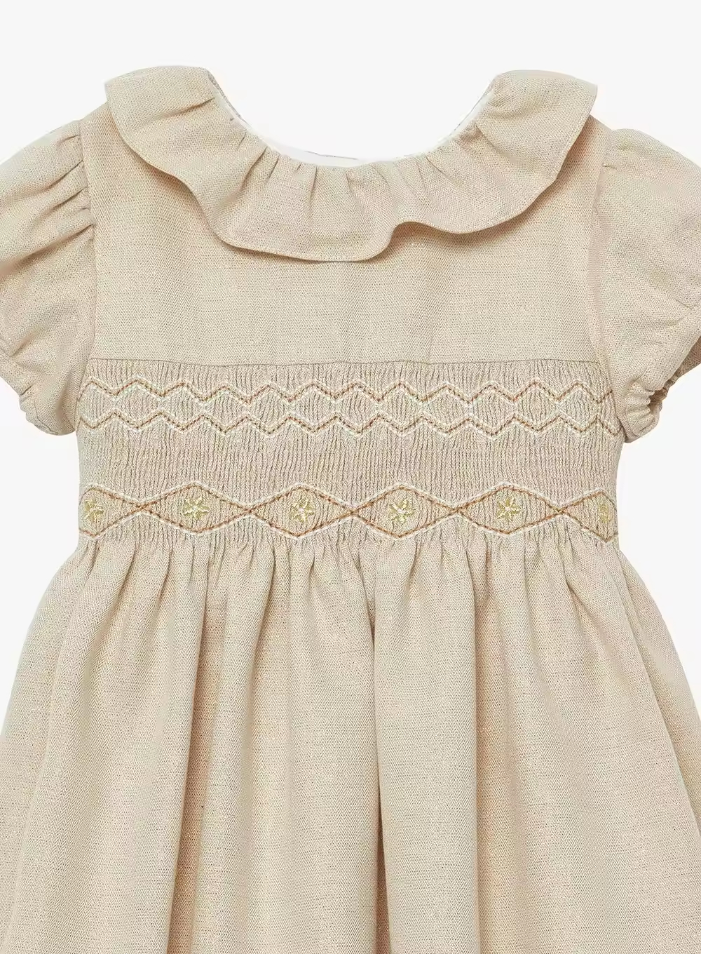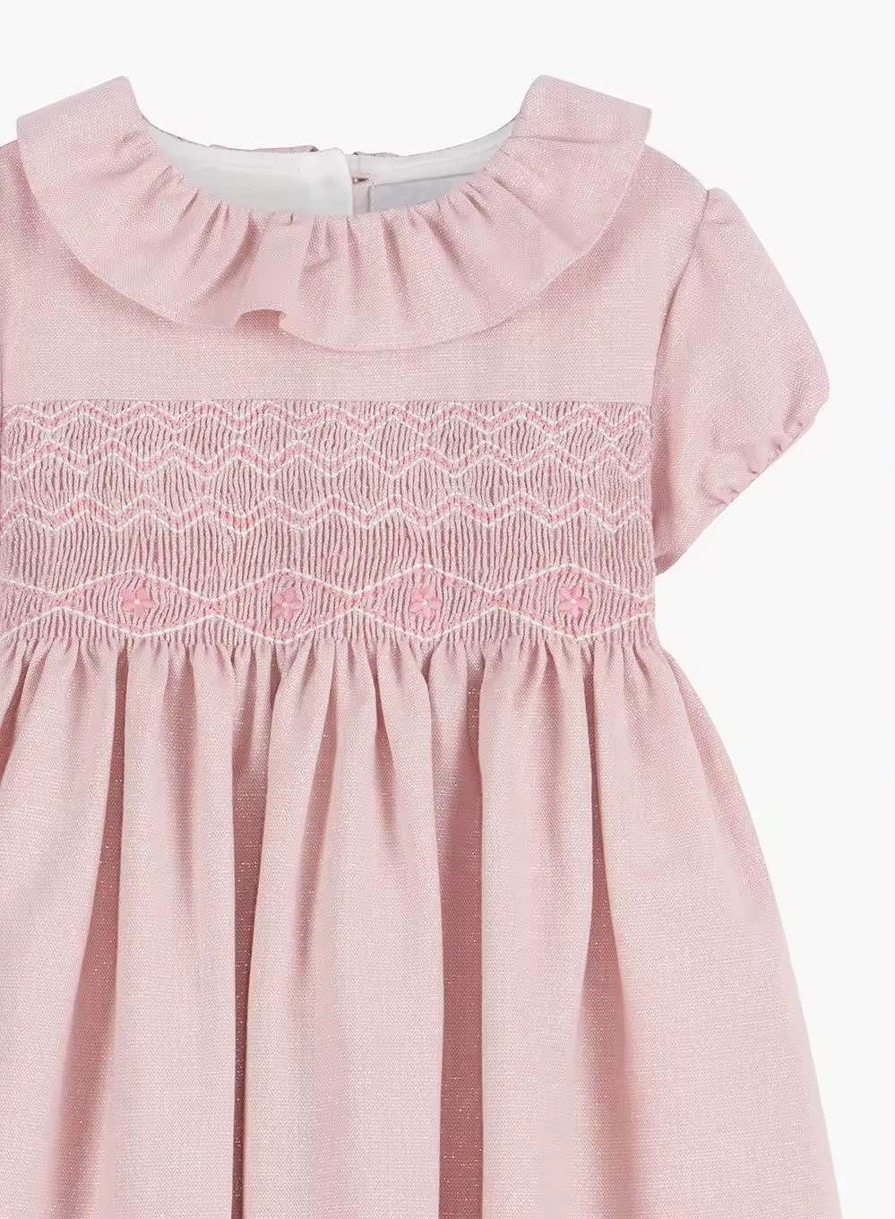 Custom pink or Gold Shimmer Linen Cotton Toddler Girls Dress Children Clothing Summer New Arrive Smocked Children Clothing