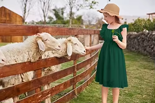 Hot Sell Kids Clothes Sleeveless Green Ruffle Summer Dresses for Girls