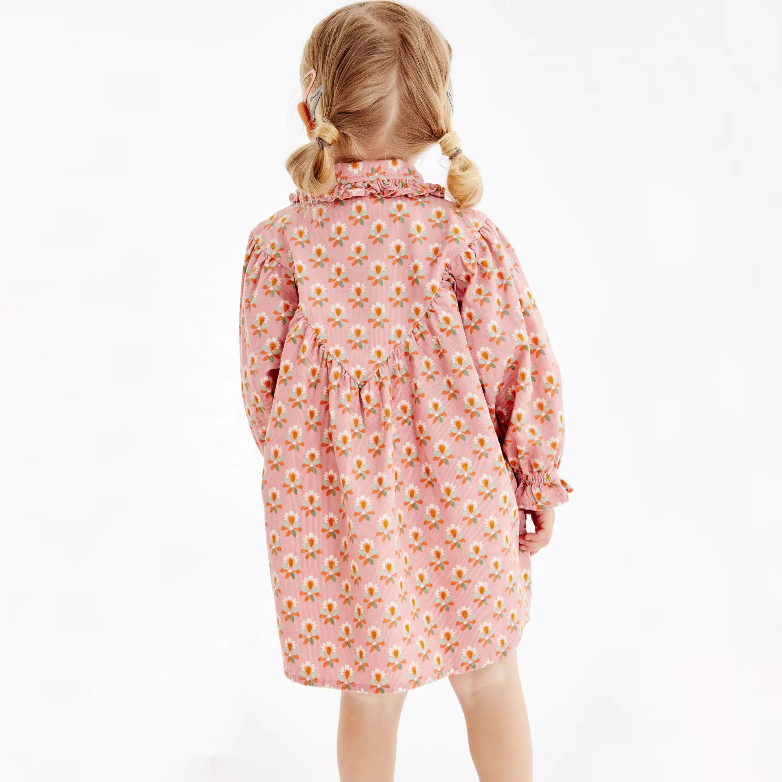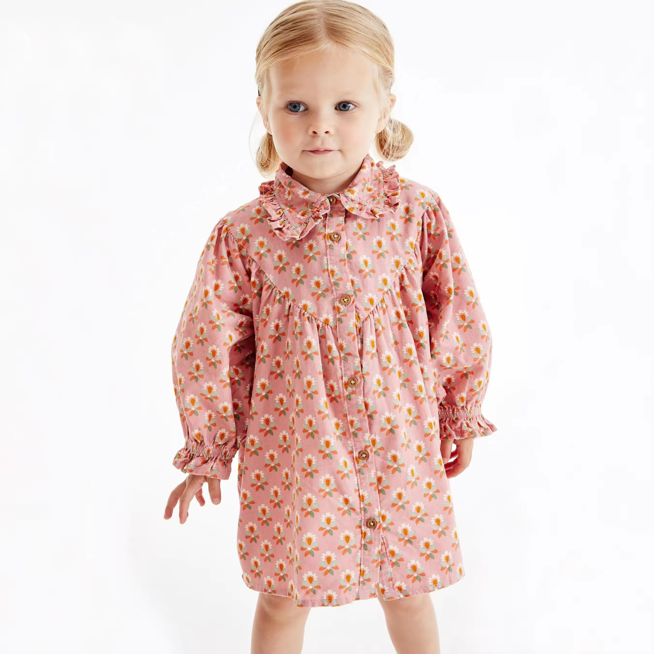 Girl Child Dress Guangzhou Supplier Custom Floral Printing Long Sleeve Knee Length Girls Casual Dresses Kids