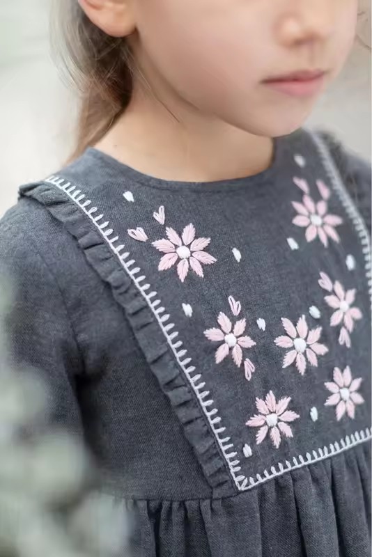OEM Latest Fashion 2025 AW Children Collection Embroidery Kids Dresses for Girls of 10-11 Years