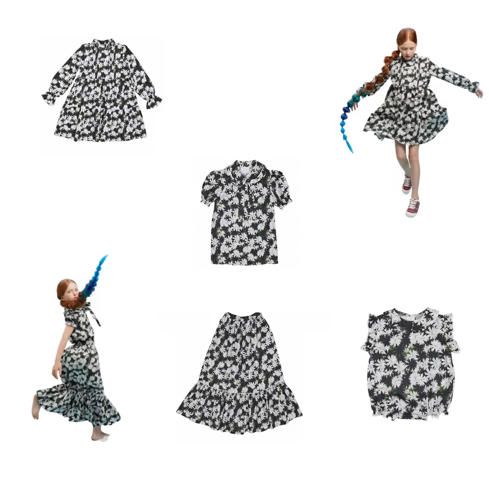 1.Girls Dress in White/black color, quality cotton fabric and a vintage style.