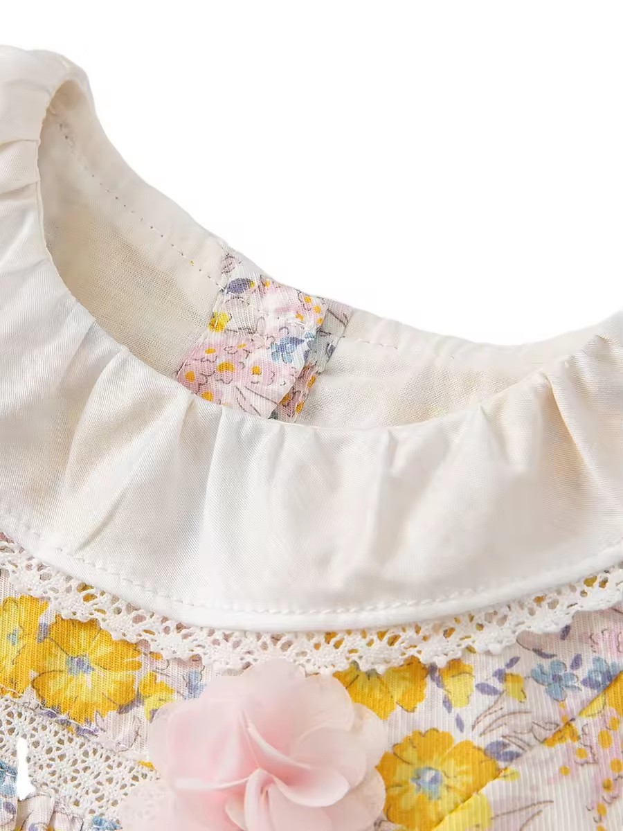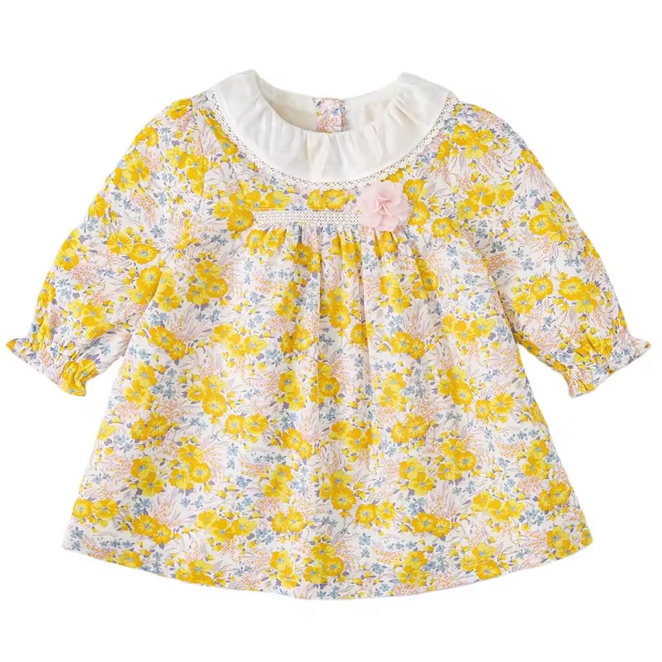 Elegant Princess-Style Dress for Girls 13-Year-Old Long Sleeve A-Line Mini Style Casual Cotton Fabric for Summer