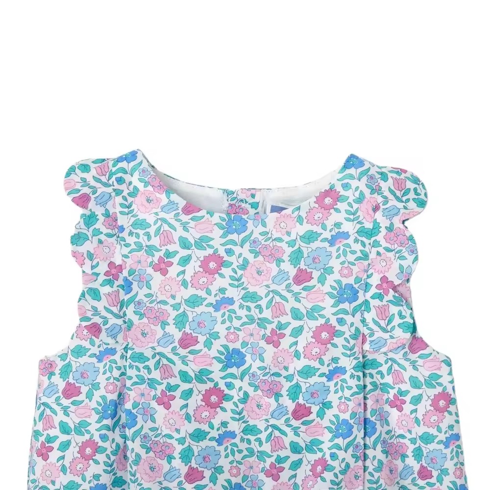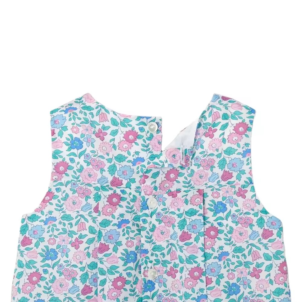 OEM & ODM Custom Floral Print Sleeveless Dress for Kids Toddler Baby Girls Woven Fabric with Button Decoration for Children