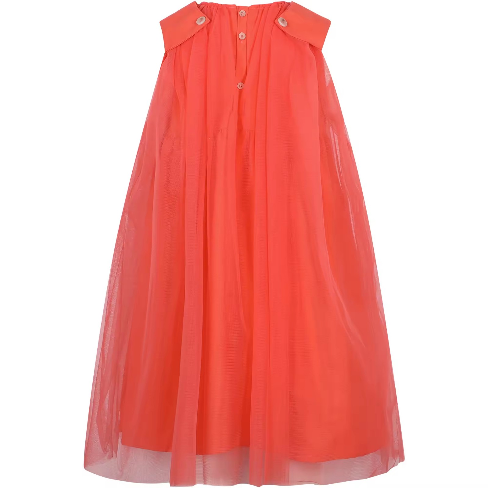 Customized European Style Girls' Dress with Red Round Collar ODM Supply Chiffon Fabric for Children