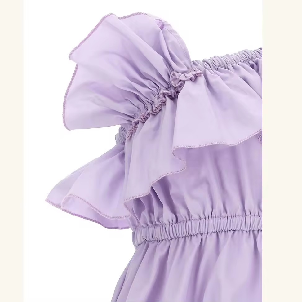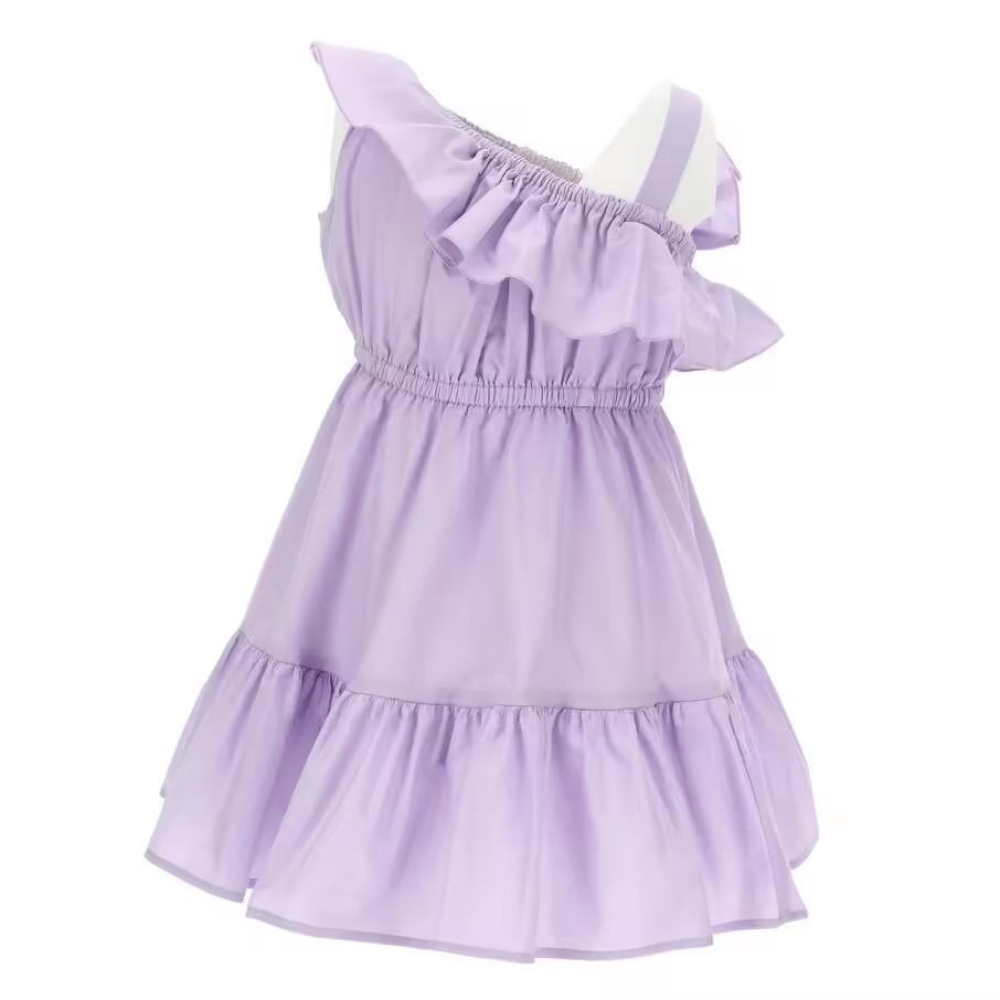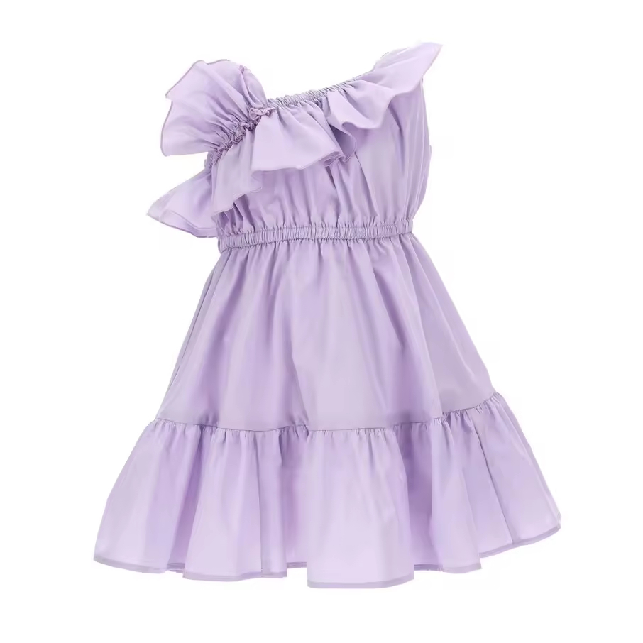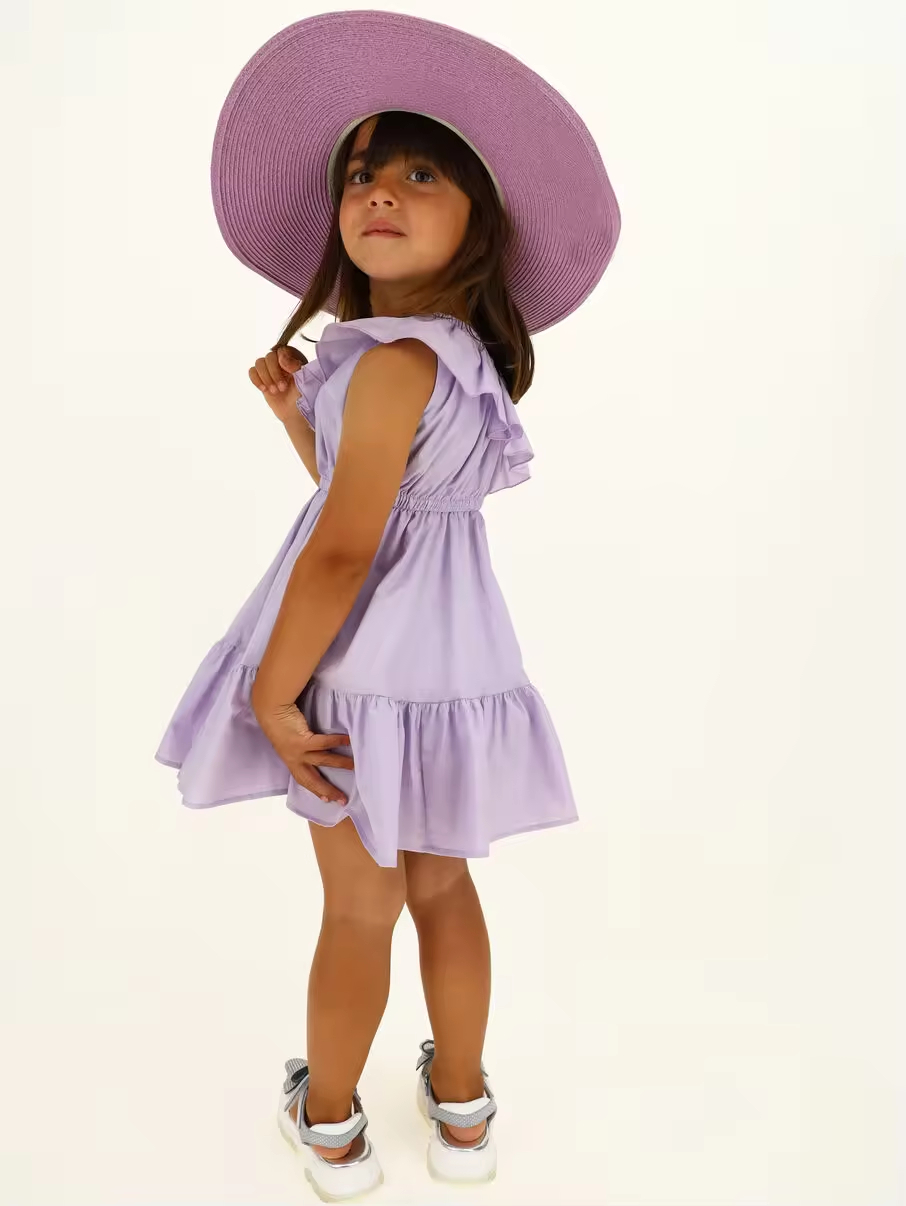Custom Fashion Cotton Woven Latest Children Kids Summer Dress Designs Lavender Color Daily Wear Dress Girl With Ruffle
