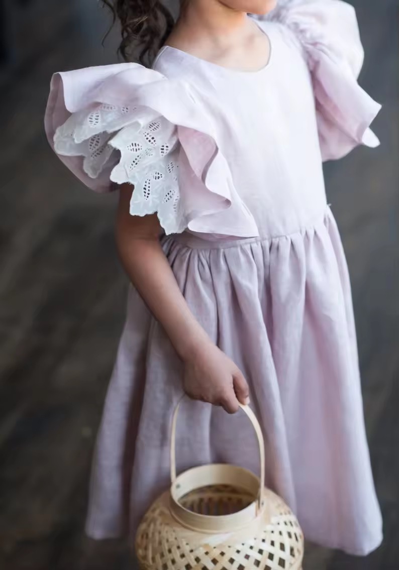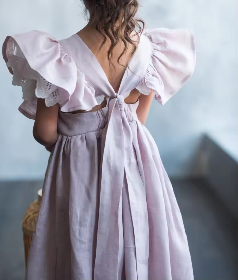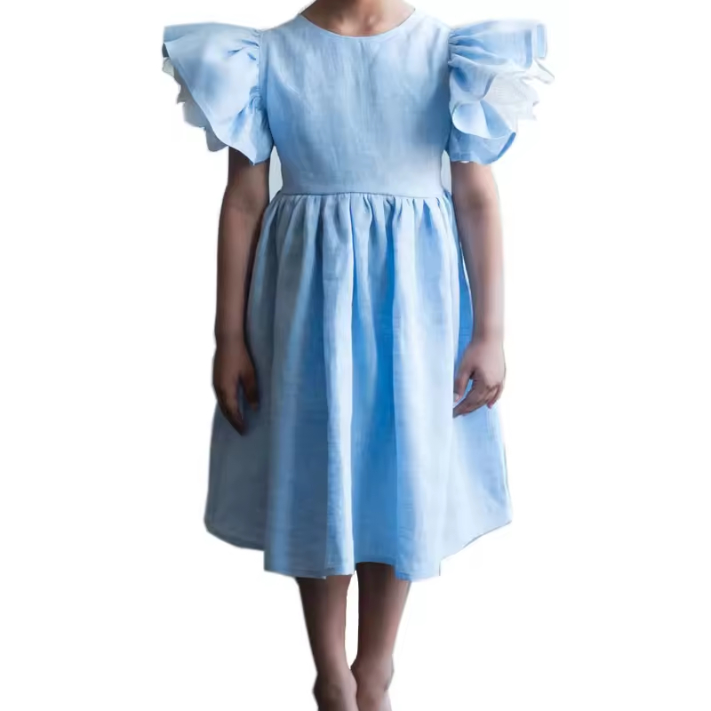 Mustard Linen Dress for Girl With Flutter Sleeve, Girls Linen Pinafore Dress, Toddler Cotton Linen Dresses