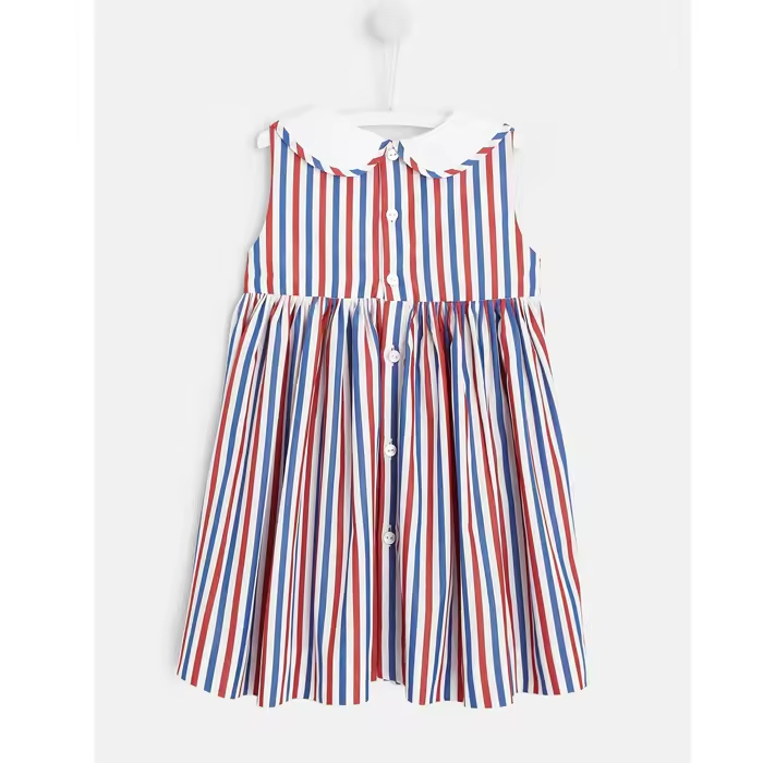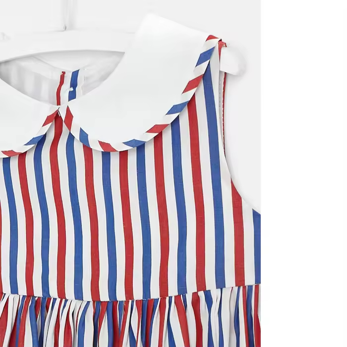 Boutique Child Summer Sleeveless Dress New Style Peter Pan Collar Stripe Baby Girl Dress