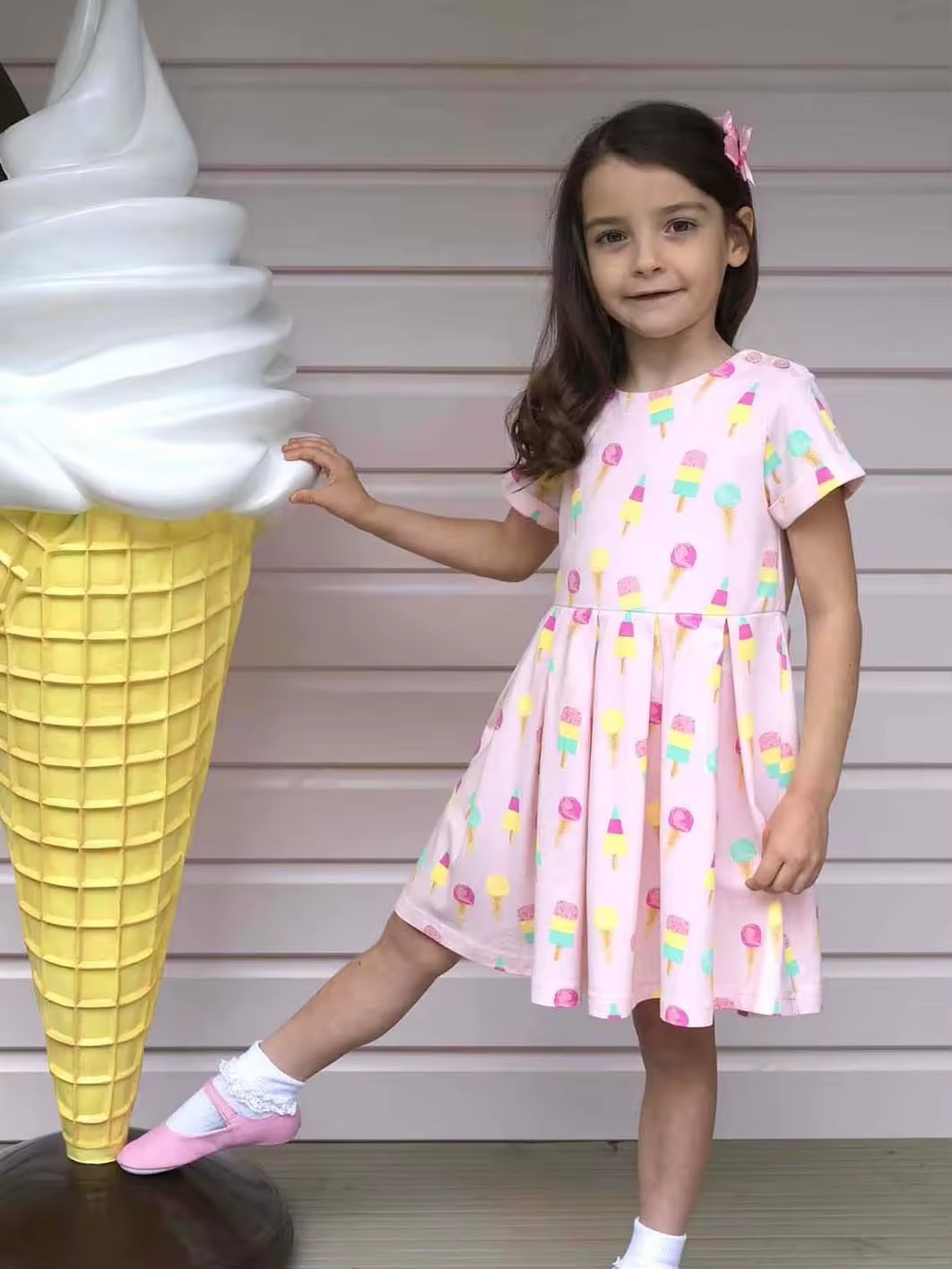 Canton Brand Boutique Children Wear Girls Dresses 6-14 Years Lovely Cute Ice Cream Printing Girls' Dresses(old)