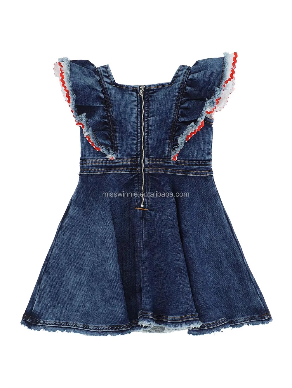 Boutique European Style Solid Pattern Denim Dress for Baby Girls Summer Washing Clothing with Embroidery Patch