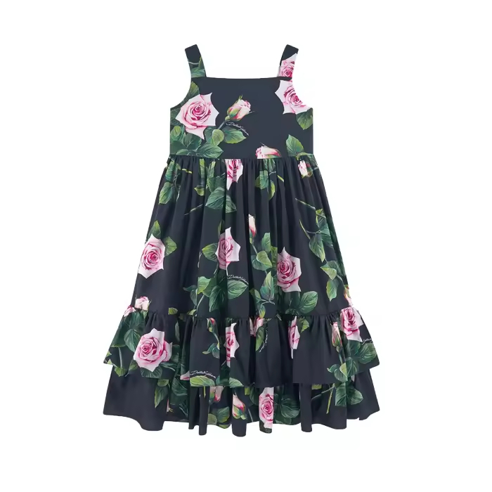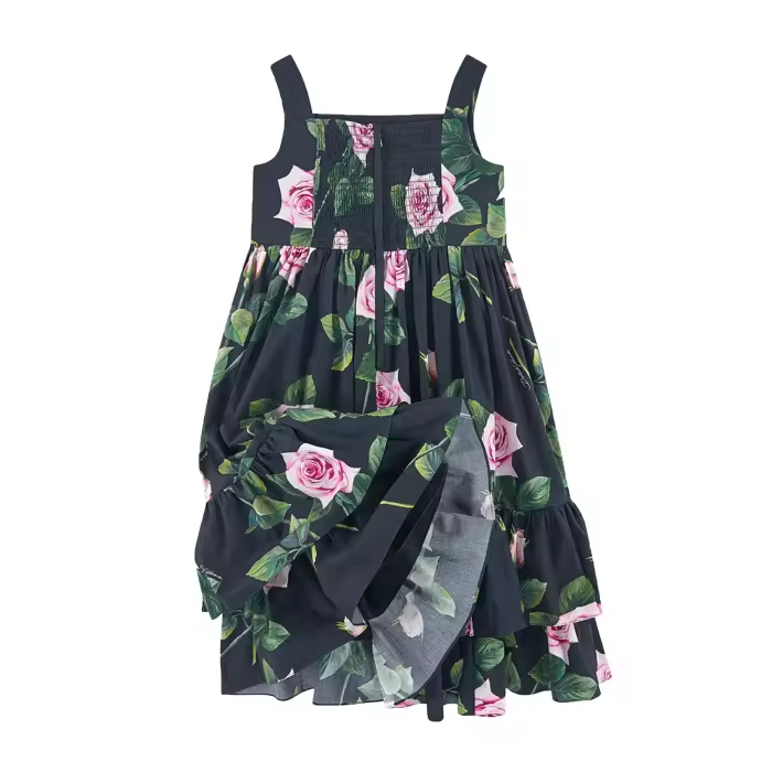 Newest Spring Summer Design Girls Dress European Kids Frocks Designs One Piece Clothing Floral Print Children Cotton Dress