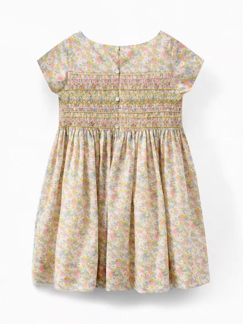 Customized Brand Floral Print Summer Smocking 2025 Girls' New Arrivals Short Dresses Girls' Korean Dresses