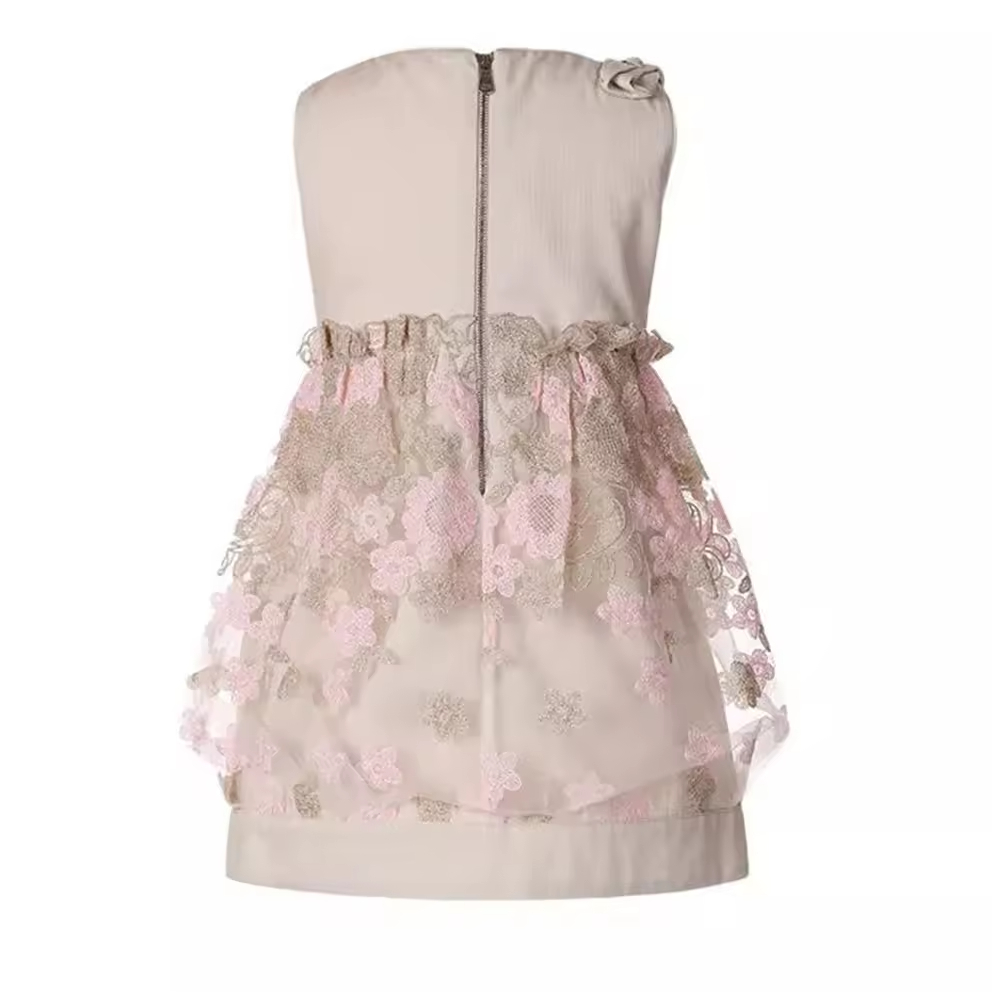 Children's Floral Cotton Wedding Dress Girls' Formal Knee-Length Summer Wear with Flower Decoration ODM Supply