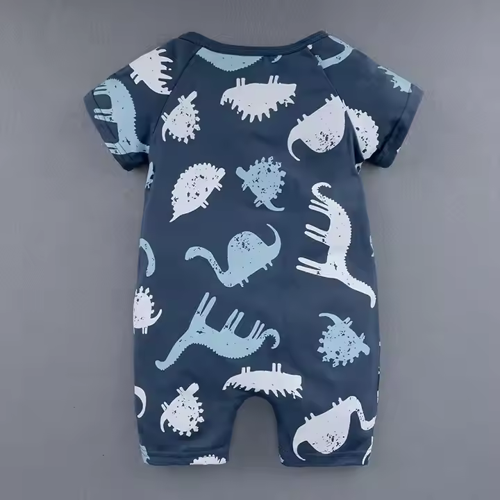 Customized Kids Clothes Infant Baby Romper Dinosaur Print Baby Jumpsuit Zip Front Summer Bamboo Newborn Baby Clothes
