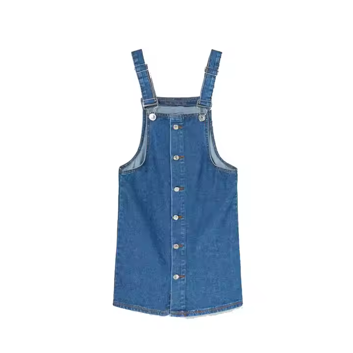 Front Buttons Kids Denim Overalls Dress Cotton Girls Suspenders Pinafore Dress Children